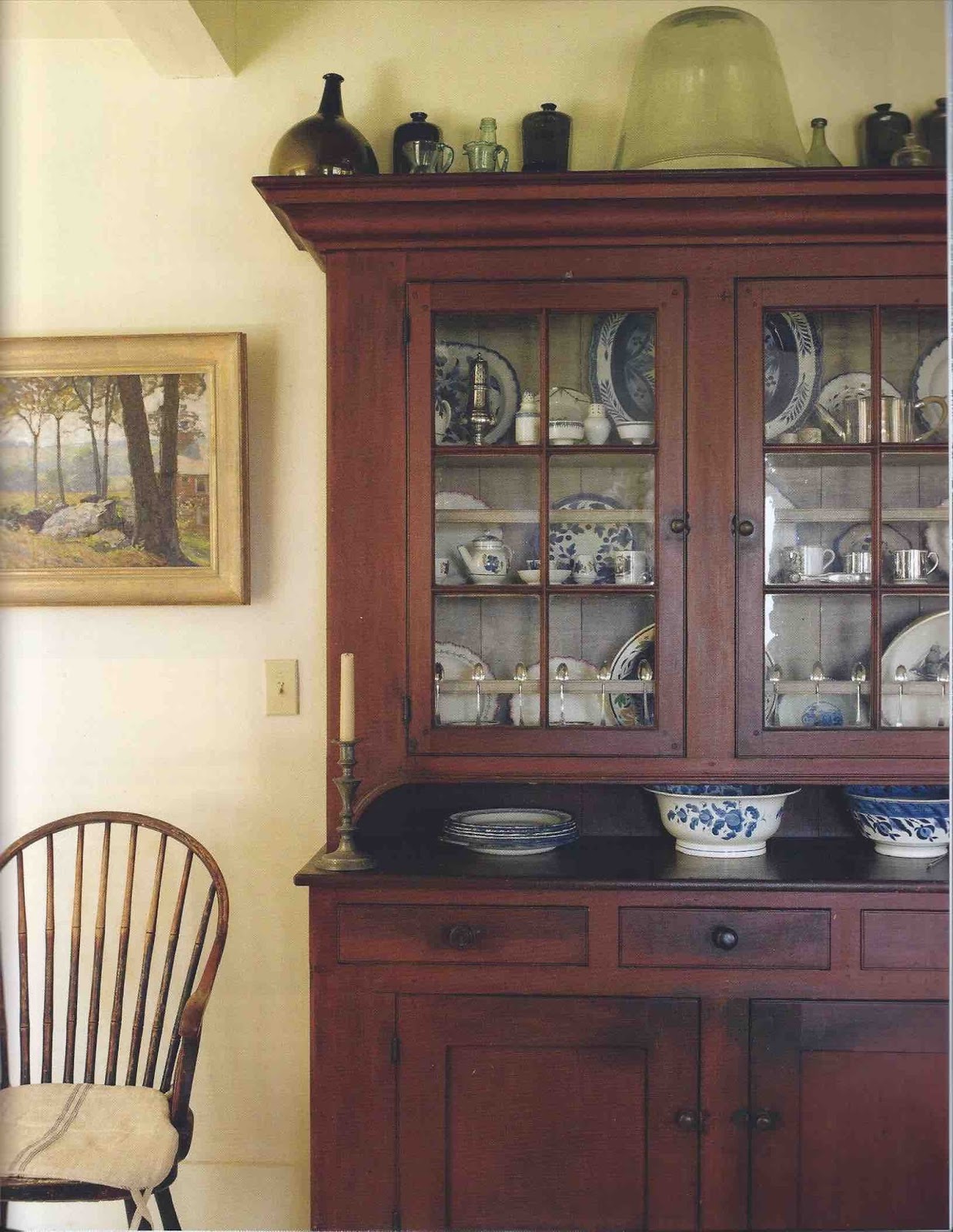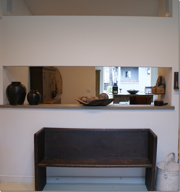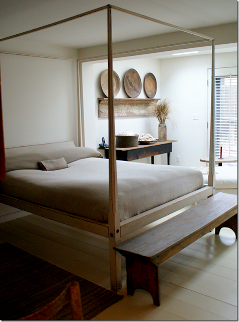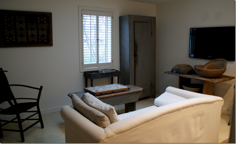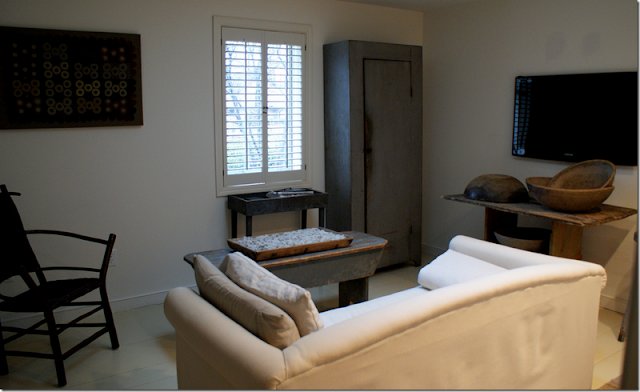 See, it's spare but with very carefully chosen antiques. And with shutters instead of draperies. So good.