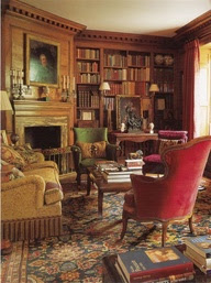 Don't you agree the Bunce home illustrates many elements that make up warm and cozy: fireplaces all aglow, a touch of red in paisley throws and tapestries, library with leather books, carefully chosen antiques, a kitchen bursting with holiday cheer.